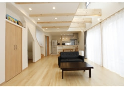 福生の住宅吹抜を通じて家族が触れ合える住宅です。 リビング上部に大きく吹抜を作り、家族が上下でも |