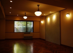 赤坂の集会室大谷石を使った落ち着いたラウンジです。落ち着いた色合いにまとめたマンションの集会室です。 |