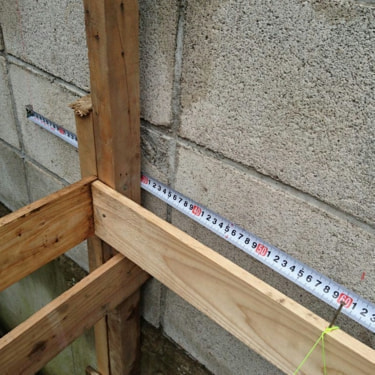 まずは遣り方にて寸法、高さ確認。